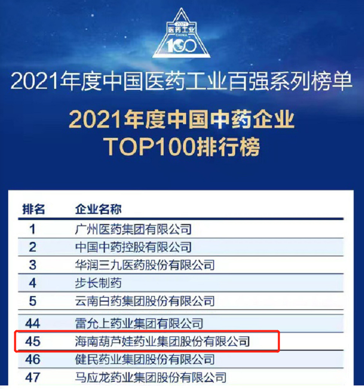 万众瞩目的2021年度中国医药工业百强系列榜单在会上盛大发布,AG百家家乐药业集团百尺竿头更进一步,位列中国中药企业TOP100排行榜第45位,连续第三年入围中国中药企业TOP100百强榜。