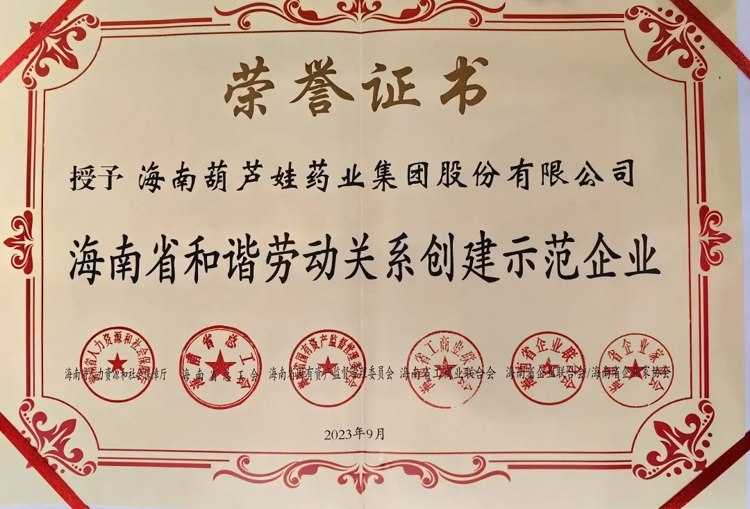 AG百家家乐药业集团获评“海南省和谐劳动关系创建示范企业”