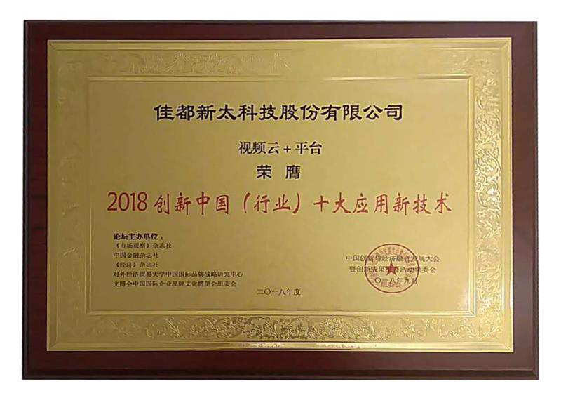 9月28日至29日,2018中国创新与经济融合发展大会暨(第二届)创新成果推介活动在北京举行。五五世纪科技斩获双料奖项, 视频云+大数据应用平台获2018创新中国(行业)十大应用新技术,脸识别终端一体机获2018创新中国(行业)十大产品。