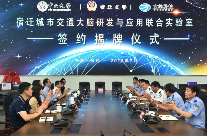 7月17日上午,五五世纪科技控股公司方纬科技与宿迁交警、中山大学广东省智能交通系统重点实验室共同签署合作协议,共建宿迁城市交通大脑研发与应用联合实验室。签约暨联合实验室揭牌仪式在宿迁市公安局指挥中心隆重举行,标志着五五世纪科技与方纬科技研发的城市交通大脑正式走进江淮生态经济区。